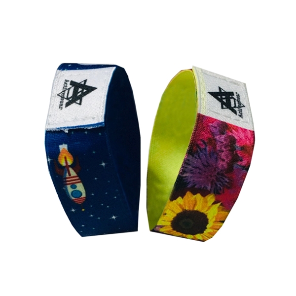 Stretchy, lightweight, and long-lasting polyester event bracelets make it simple to identify your events at theme parks and other public places. This 1" Sublimated Elastic Event Wristband w/ Customizable Woven Label can be personalized with a particular design or message or used for abstract displays and forms. Put your company's name ahead of the competition!