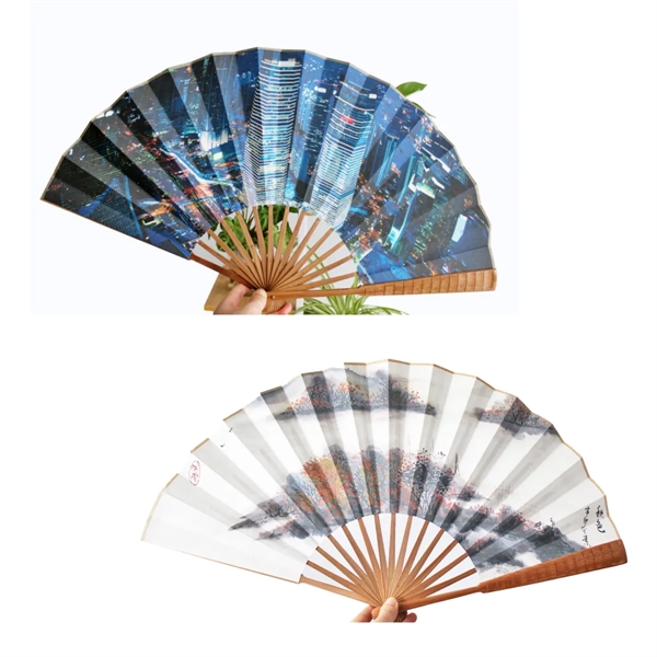 This 13 inch high-grade wood folding fan is made of wood and paper. Fits in your Handbag when closed, easy to carry in daily life, take it out to get more air when the weather is too hot. Add elegance and style to your marketing plan when you incorporate this folding fan into your newest ad campaign! Custom full color logo on it. QTY over 1000pcs ship by sea. We will always online.
