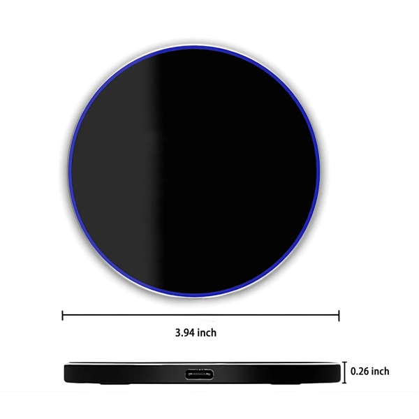 This wireless phone charger is round and measures 3.94" x 3.94" x 0.24". The maximum power of wireless charging is 15W, and your mobile phone needs to have the function of wireless charging to use this wireless charger. Just place your phone on the flat surface of the product to become a phone charger. In addition to that, this wireless charger is Qi certified and made of aluminum alloy and ABS material, which is fire-resistant, so you can use it with confidence. The product is equipped with a data cable, which supports free customization of the logo, which can be used as an excellent gift for relatives, friends and customers, and can also be used as a prize for trade fairs and annual meetings. The prices for 3000pcs or over are based on ocean shipments.