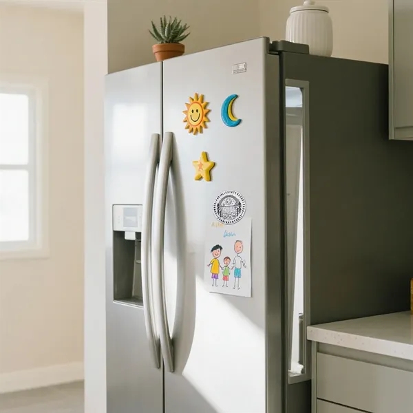This round fridge magnet is crafted from lightweight aluminum alloy, 3″ in dia, features 3d effect surfaces and full magnetic back for instant adhesion to refrigerators, metal lockers, and office cabinets,which is a great magnetic refrigerator magnet decor.