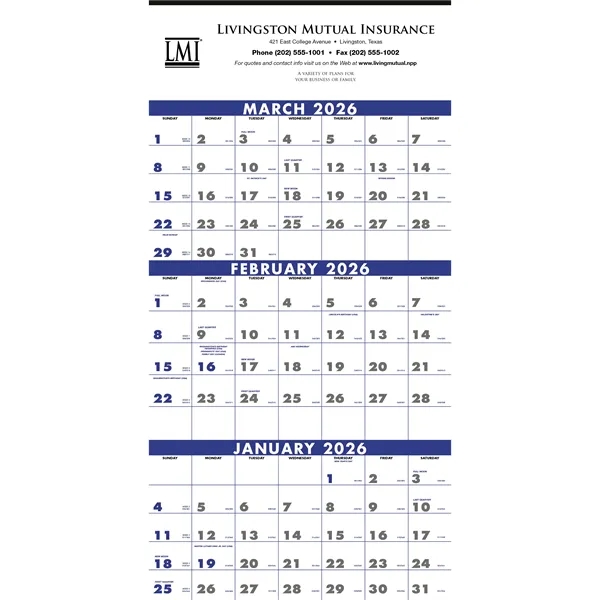 Showing three months at once, this calendar is easy-to-read and useful. Simply tear off the old month at the perforation and a new one appears. The SFI® label means that materials used for this product have been responsibly sourced.