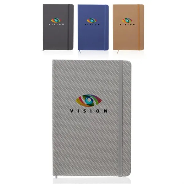 The Arco A5 Knit Texturized Notebook combines modern style with everyday function. It's Featuring a unique knit-textured cover, this notebook offers a tactile feel and a contemporary look. This Product Dimensions: 5.5" W x 8.4" H and Imprint Area: 3" W x 3" H. Its compact A5 size makes it perfect for note-taking, journaling, or meetings on the go. Inside, you'll find quality lined pages for organized writing, while the elastic closure keeps contents secure. Ideal for students, professionals, or promotional use, the Arco notebook blends durability, elegance, and practicality in one sleek, customizable package for lasting impressions.