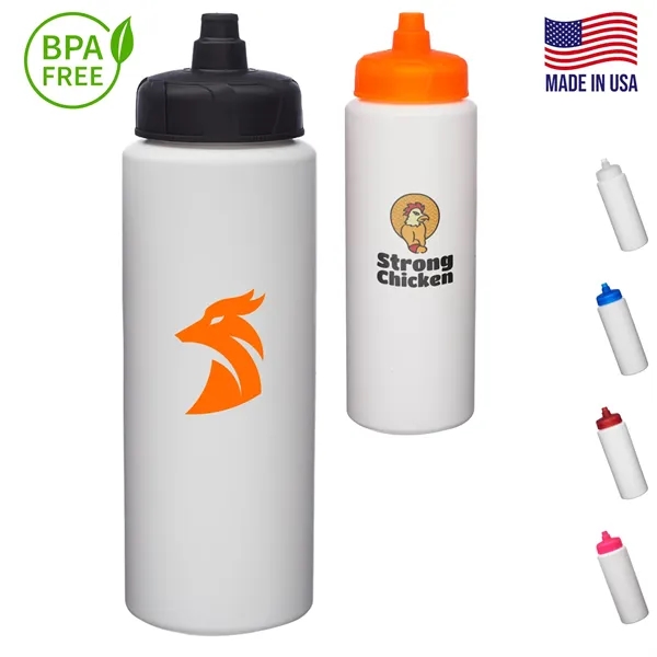 32 oz. USA made HDPE Plastic Sports Bottle w/ Quick Shot Lid
