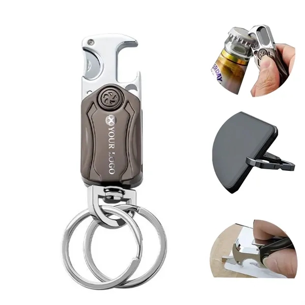 This is a 4-in-1 multi-functional keychain tool! This key ring combines four essential functions into one compact design. It features a spining fidget spinner, a convenient bottle opener, a mobile phone holder, and a key knife, making it a versatile tool for everyday use. Also you can use it as a key rings key holder for car keys. And this keychain spinner made from high-quality stainless steel materials, which is solid and durable, anti-scratch and anti-rust. The car key chain is strong and reliable, ensuring that your car keys are always secure. Logo processing can be customized. A variety of printing methods are available. The prices for 5,000 pieces or over are based on ocean shipments.