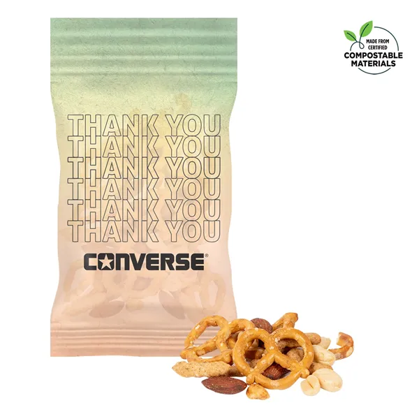 Add a dash of excitement to your message with party mix packaged in a sustainable and customizable Eco DigiBag. Bag crafted from compostable materials. Full Color Customization. Filled with 4 oz of Party Mix, a perfect snack that blends sweet & crunchy. Perfect for eco-conscious campaigns, this bag combines sustainability with crowd-pleasing flavors.