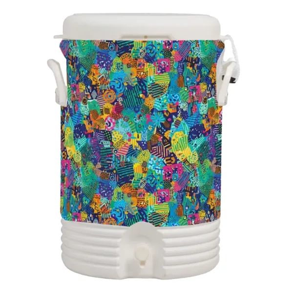 The Igloo 5 Gallon Beverage Cooler offers reliable cooling performance in a more compact size. This efficient cooler maintains ice for up to 3 days even in 90Deg F temperatures, making it perfect for extended outdoor activities. The pressure-fit lid design prevents dirt and mold buildup, while the angled drip-resistant spigot ensures clean, easy dispensing. Reinforced handles provide durability and comfortable transport. Ideal for smaller gatherings, sports events, parties, golf outings, or job sites, this American-made cooler features a 39.25" x 13.375" area for vinyl wrap customization with DTF or vinyl to promote your brand effectively.