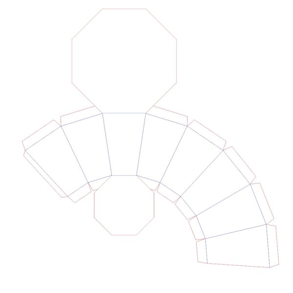 5-in H x 3.5-in W octagon shaped box with flat folding top and bottom.