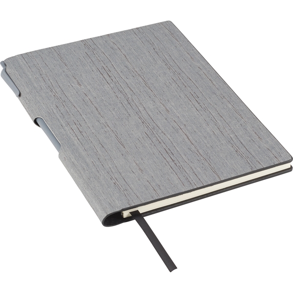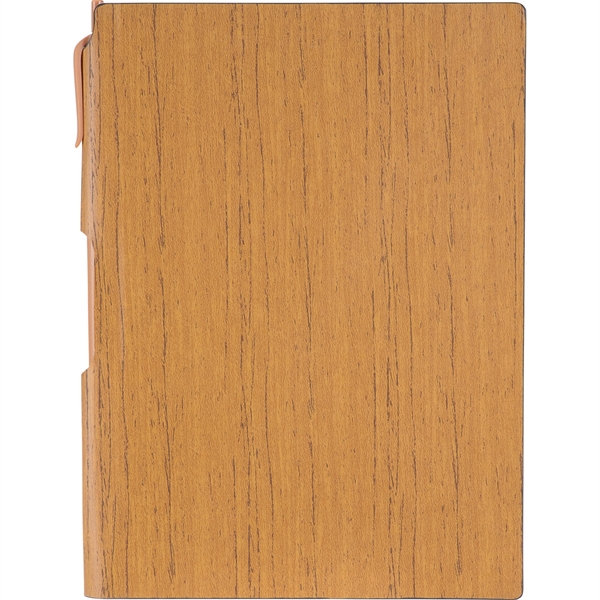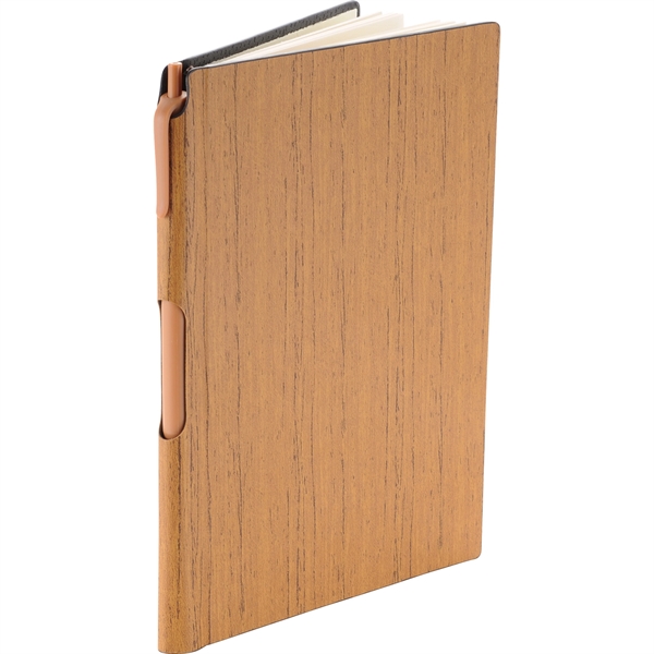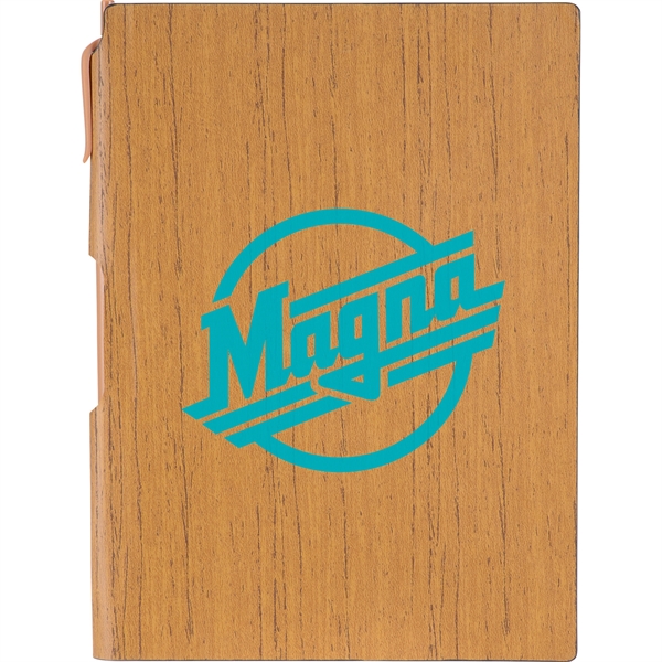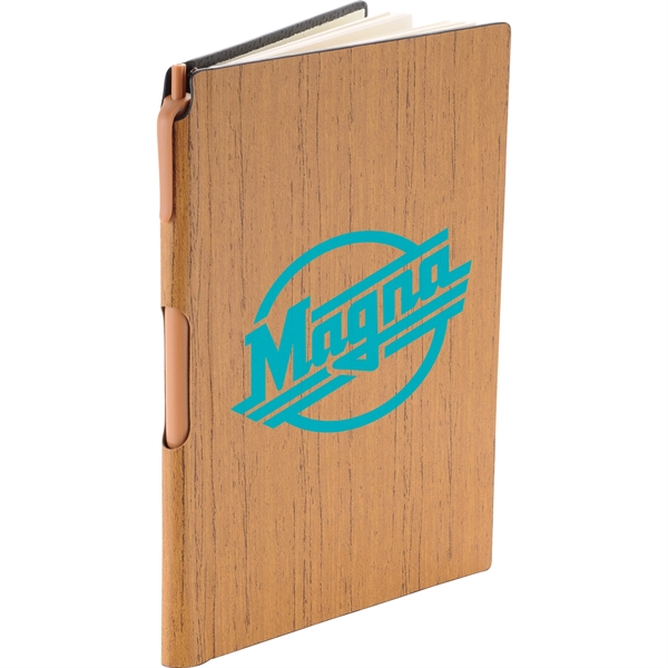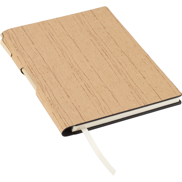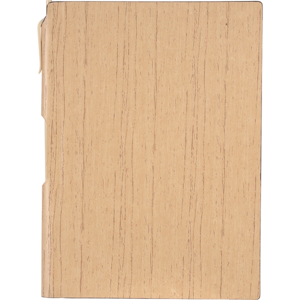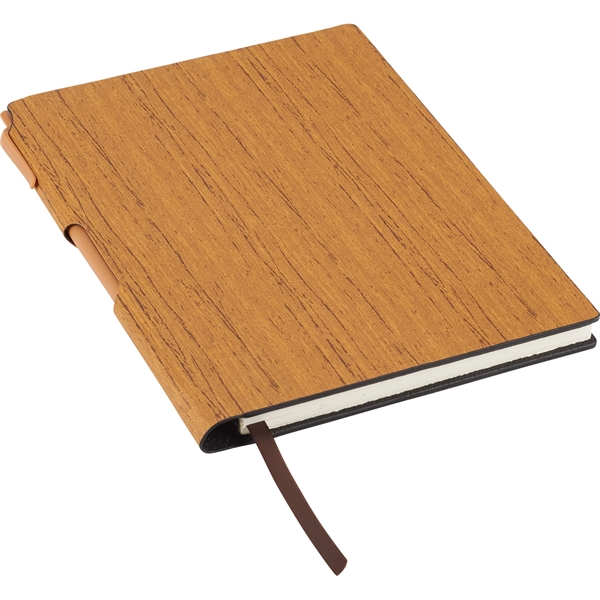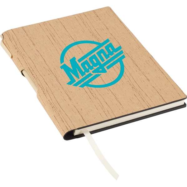 Sometimes, your head becomes too cluttered with thoughts and ideas that you can't think straight anymore. Empty out those thoughts into this FSC® Mix Bari A5 notebook. This 6" x 8.5" writing pad is designed to look like wood on the outside and is filled with 80 sheets of beige ruled paper on the inside. You can begin writing right away with the including matching plastic pen that can neatly tuck away into the spine. Pens are packed separately. Write off the competition when you customize this notebook and pen set.