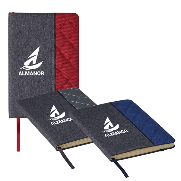Jot down everything from your innermost thoughts and feelings to this week's shopping list in the 8" x 6" 80 page Mod Journal. This handsome book has a 300 Denier polyester hardbound cover with a quilted pattern in your choice of three colors, 80 lined pages of quality paper, a stretchy elastic closure and a ribbon bookmark to help keep your place. Writing gear always makes a noteworthy promotion! Add your school, sports team, organizational or company logo or message to customize.