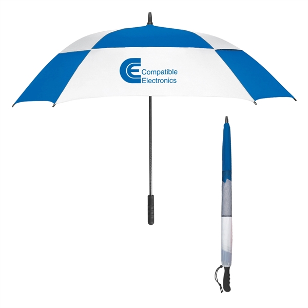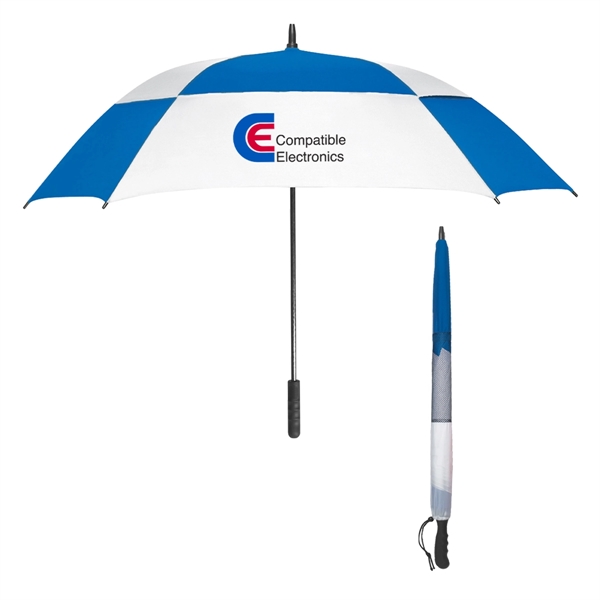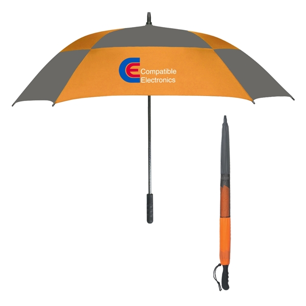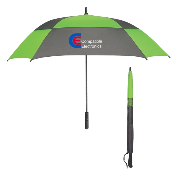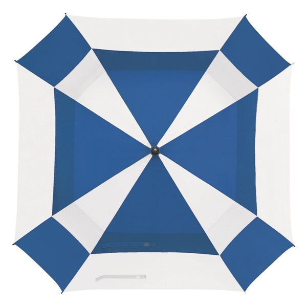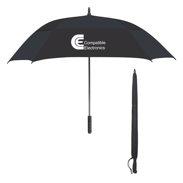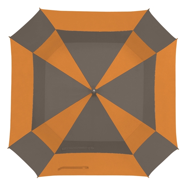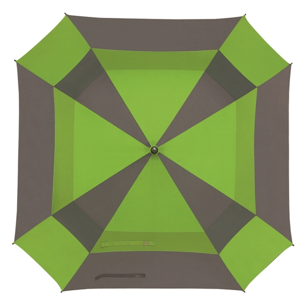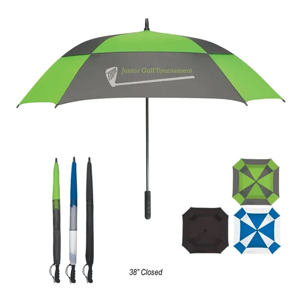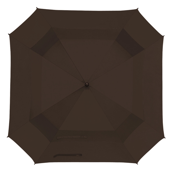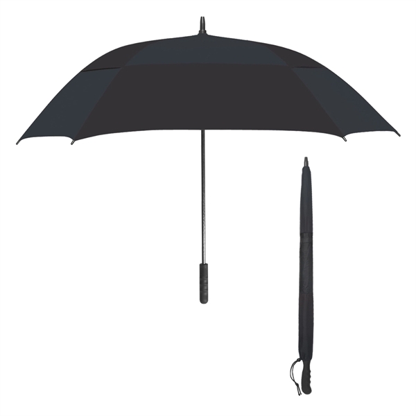 Automatic Open. Anti-Wind Square Canopy Designed To Resist Inversion. Fiberglass Frame And Ribs. Rubberized Comfort Grip Handle. Mesh Case With Elastic Bungee Cord-Lock Closure. Polyester Material. 38" Closed.