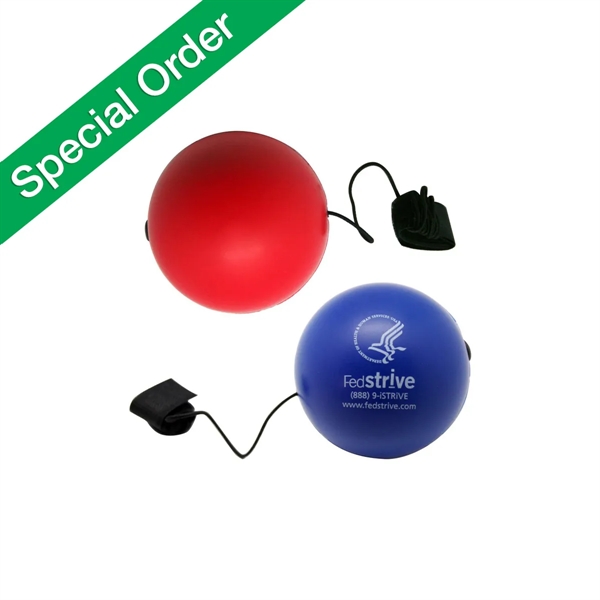 Here's a promotional item that's bound to be a hit at your next event! This Bungie ball measures 2.75" and features a bungee cord that you can toss against the floor or in mid-air, and it keeps bouncing back! It helps relieve stress, while having fun. With your brand name or logo featured on each one, you will leave a lasting impression with customers! Available in red or blue; please order by color. This product is not intended for use by children or pets. It may present a choking hazard to children under 3 years of age. Special order only.