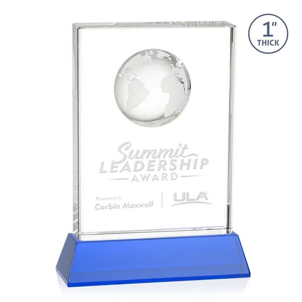 Celebrate global success with our Optical Crystal Ambassador Globe Award on Base, featuring a striking 3D world Globe molded into the back for a truly distinctive touch. Mounted on a tall tapered base in your choice of 8 colors. Perfect for recognizing international accomplishment.