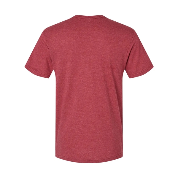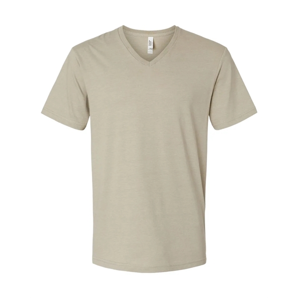 American Apparel Unisex CVC V-Neck Tee ul)4.6 oz./yd2, 60/40 combed ring-spun cotton/ recycled polyester, 30 singles. Blend of soft combed ring-spun cotton and recycled polyester for a soft hand.. Subtle heather appearance on all colors except Black and White. Relaxed fit. Narrow width, rib collar. Taped neck and shoulders for comfort and durability. Side seams. Tear away label. American Apparel partners with Better Cotton to improve cotton farming globally. Made with OEKO-TEX certified low-impact dyes. This product meets the following Sustainable Style subcategories:Sustainable Manufacturing: This product meets the OEKO-TEX Standard 100.Socially Conscious Manufacturing: This product was made in a facility that utilizes the Higg Index and has implemented Level 2 practices or above, was ...