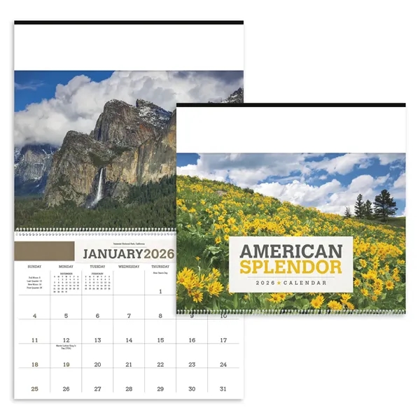 Impress customers easily with this calendar, which features 12 different, beautiful American scenes. The date pad offers ample space for appointments and notes. The FSC® label means that the materials used for this product come from well-managed FSC®-certified forests and other controlled sources.