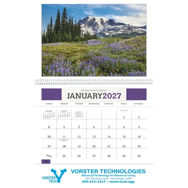 Always popular, each month of this handy calendar features a beautiful photograph from one of America’s most scenic places along with a convenient storage pocket. The SFI® label means that materials used for this product have been responsibly sourced.