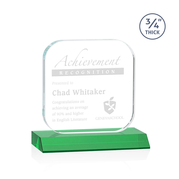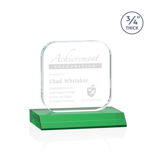 With its rounded square shape, this Starfire Crystal App Award was designed to embody a mobile app icon! Mounted on a front mitered emerald crystal base, this recognition piece is perfect for appreciating and awarding the work of a well-rounded developer, project manager, or designer during app launch. Second position etch optional.