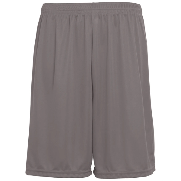 Allow this pair of stylish adult shorts to perfectly adapt to your active lifestyle. Made of 100% polyester-wicking knit and equipped with moisture-wicking performance, this item can effectively wick moisture away from the body as you sweat. Also featured are a full cut, a heat-sealed label, a covered elastic waistband with an interior drawcord, side-seam pockets, and a 9" inseam. If you're interested, there is a wide variety of eye-catching colors and sizes available to choose from.