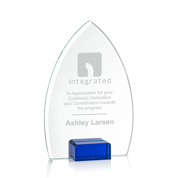 This starfire Ophelia award features a curved and pointed design on a blue optical crystal base, making it a wonderful accent to any fireplace mantel! With a display of beautiful craftsmanship this would be excellent for recognition programs and educational accomplishments! Individually deep etched by hand, your personalized message or logo can garner extra attention. Reward employee achievement with this timeless piece of beauty! 3 size options.