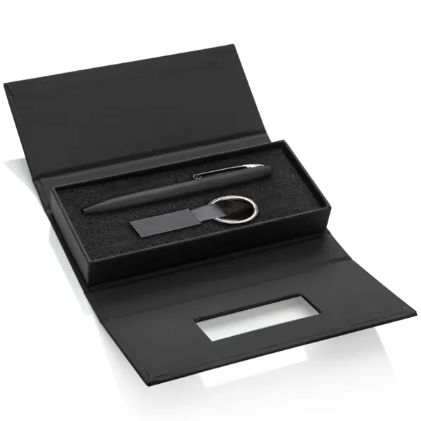 Banos Pen and Keychain gift set. Packaged in our black wood style box with foam inserts.
