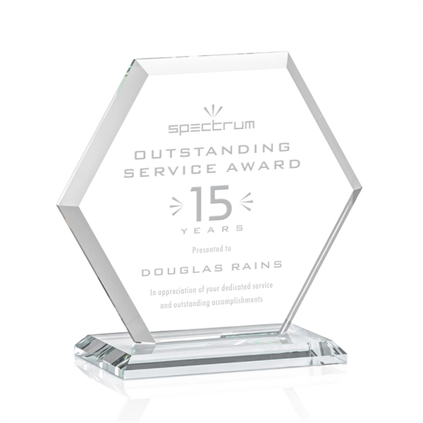 The Barnett Award features a beautifully beveled Starfire Crystal Hexagon mounted on your choice of 9 distinct bases. The large decorating area is highlighted by the deep mitered edges that frame your outstanding achievement with refracted light.