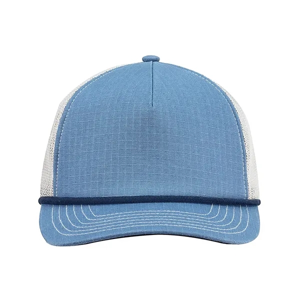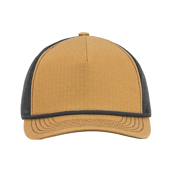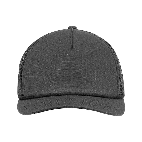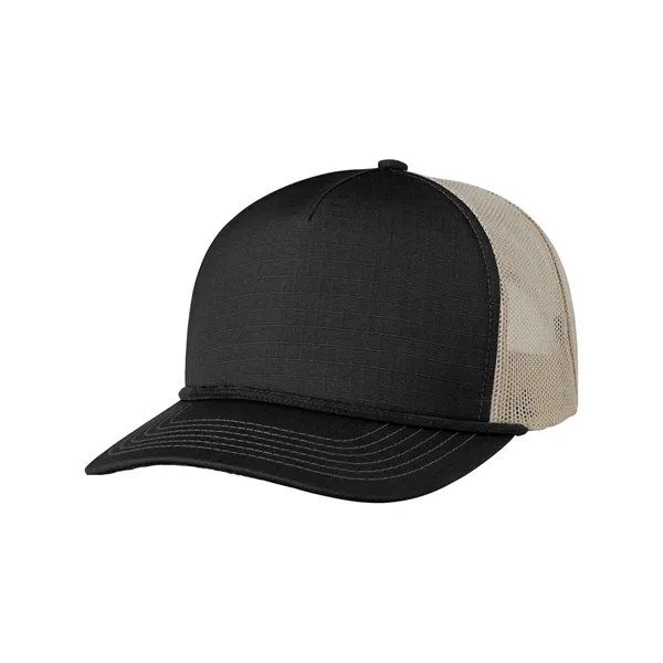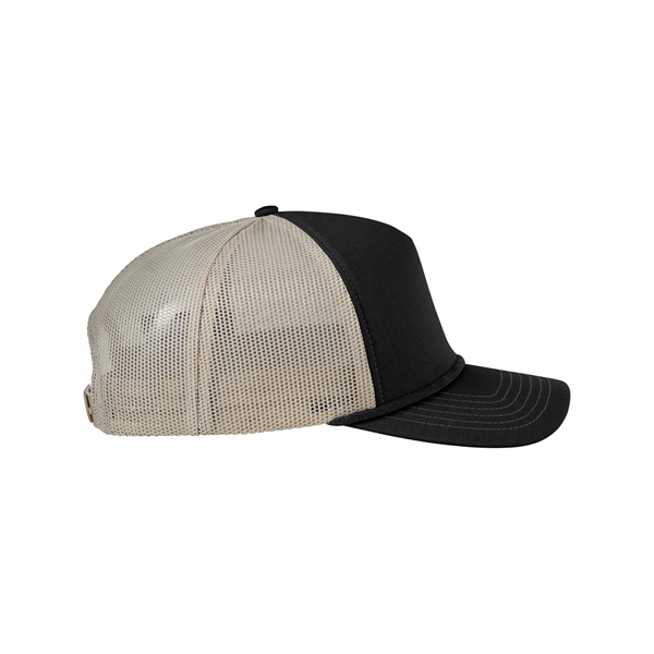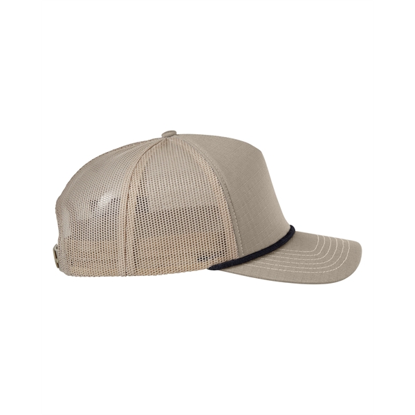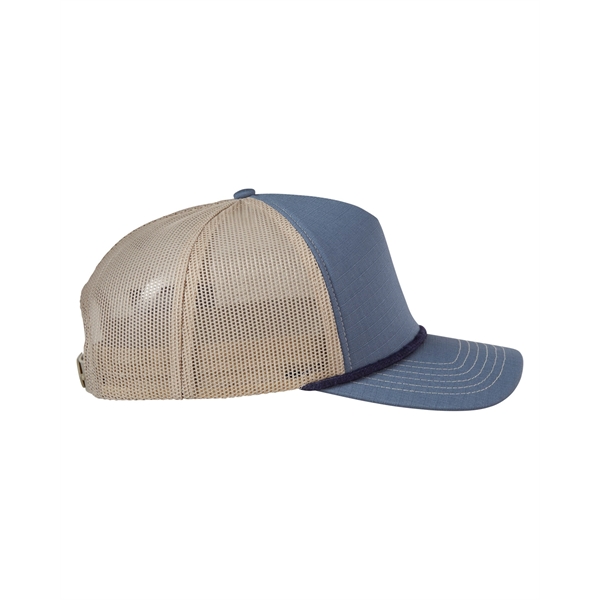 Find the perfect fit with this one-of-a-kind trucker hat! Featured are a 5-panel design, a structured style, front panels with a foam backing, contrasting polyester rope, a flat bill with contrasting twill underbill, and a snapback closure. Additionally, this product is made of 100% cotton ripstop material and has back panels made of 100% polyester mesh. If you're interested, there is a wide variety of beautiful colors available to choose from as well.