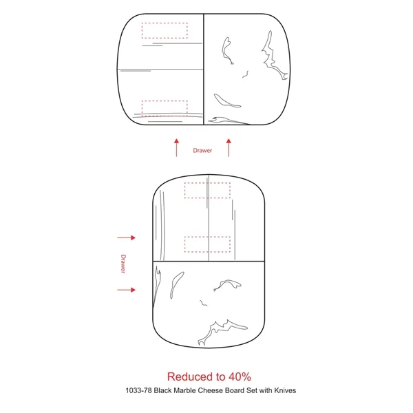 Elevate your entertaining with this stunning cheese cutting board set. Crafted from a sleek blend of black marble and warm acacia wood, this two-tone masterpiece is both stylish and functional. Conveniently store your cheese tools in the built-in drawer, keeping your countertop clutter-free. Please note: Due to the natural properties of marble and wood, each board is unique, with variations in marble pattern, laser engraving, and wood color.
