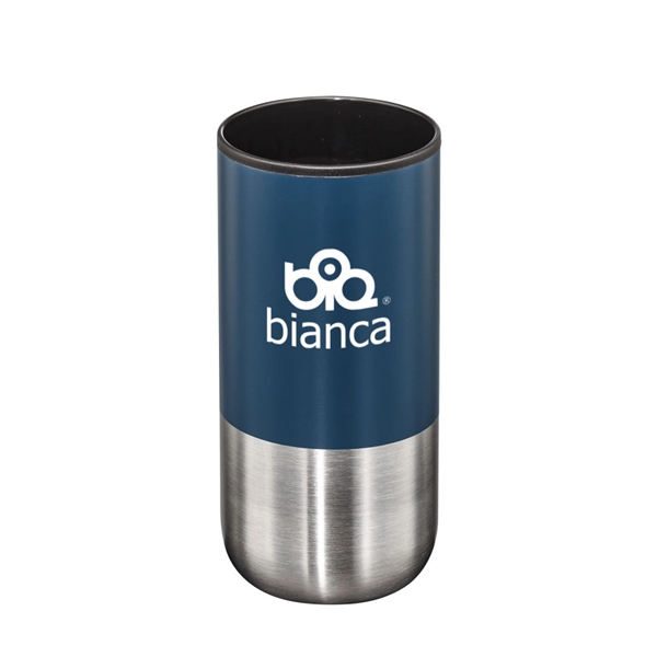 The Bondi Double Wall Tumbler w/Straw holds 18oz and features a silicone straw head and thermoplastic liner. Once beautifully decorated, this stylish tumbler will have everyone’s eyes on your logo.