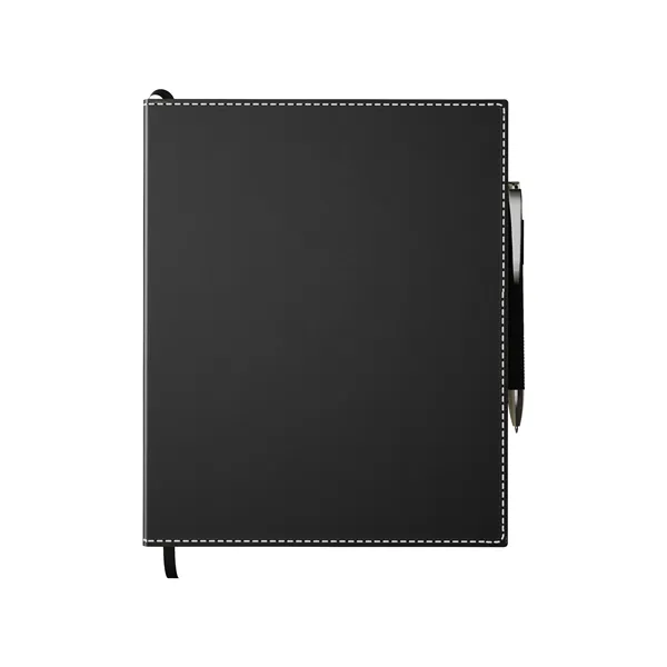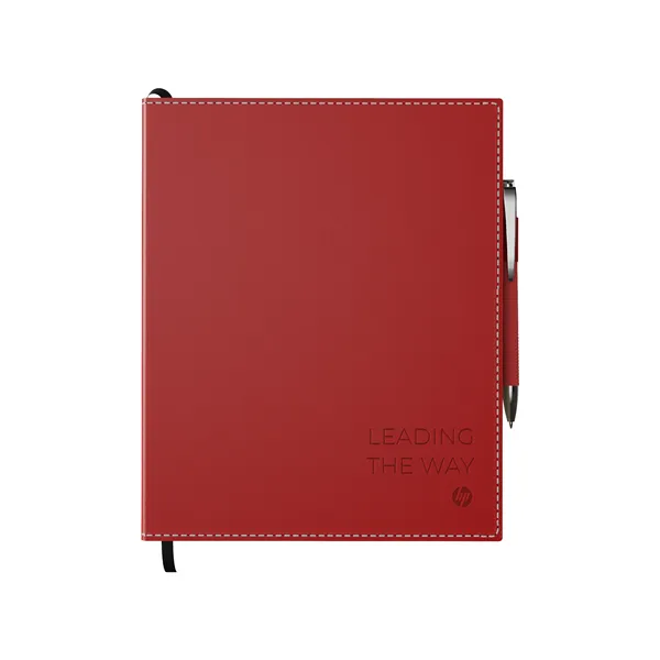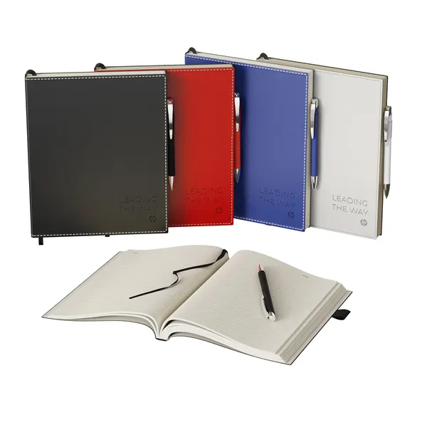 Combo includes ST4671 Bradford softcover 8 x 10 non-refillable, perfect-bound journal and a G1109 Rita color matching plastic ballpoint pen. Journal has 192 ivory colored pages, lined and perforated, with date feature, color matching elastic pen loop, and a black color ribbon bookmark. Inner paper dimension 7 x 9