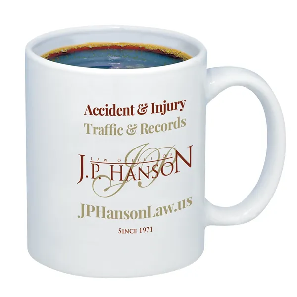 Start the day with this classic 11 oz. ceramic mug, featuring a glossy finish inside and out. Designed with a large C-handle for a comfortable grip, it's the perfect companion for coffee, tea, or any hot beverage. Multiple imprint options are included in the price, including a 1-color wrap, 1-sided imprint (either side 1 or 2), or 2-sided imprint, offering plenty of ways to make a big impact at a budget-conscious price point.