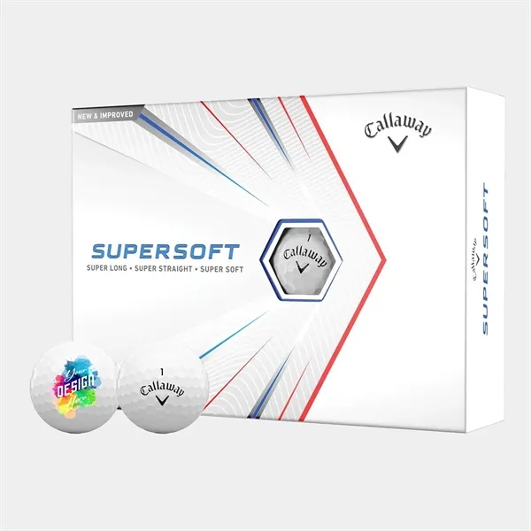 Callaway Supersoft Custom Logo Golf Balls are designed for golfers seeking exceptional distance, spin, and control. Featuring a hybrid cover with PARALOID™ Impact Modifier, these balls deliver high ball speeds and durability. The soft compression core enhances energy transfer for maximum ball speed and a high launch with low spin. Customize your golf balls with a logo or imprint in 1 to 5 colors, making them perfect for tournaments, corporate gifts, or personal branding. Packaged with three balls per sleeve and four sleeves per dozen box, these golf balls combine outstanding performance with sleek personalization.
