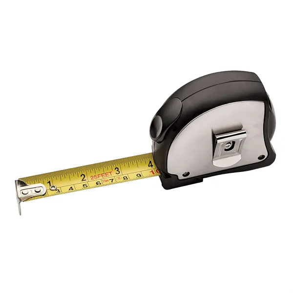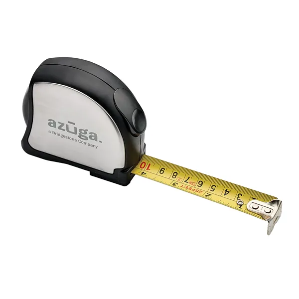 Get clients to understand your brand when you add this tape measure to your inventory. It comes in gray-silver available in 25' size. This features a self-locking mechanism for tape to be extended smoothly, and a push-button for easy retraction. The tape is coated for maximum durability. This is made with an impact-resistant rubber case, a cushion grip that provides a comfortable, slip-resistant hold, and an attached belt clip. Add a laser engraved imprint and extend the reach of your brand.