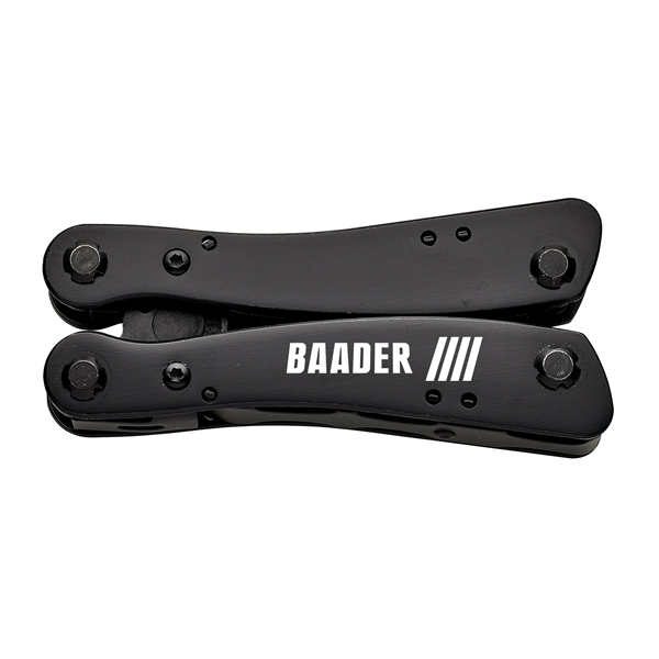 The Cedar Creek Sub-Arctic Multi-Function Tool is 4" closed, and features black stainless steel handles and implements. Tools include: Spring action pliers, knife, saw, file, Philips screwdriver, flat screwdriver, can opener, bottle opener, and awl. Comes with nylon pouch. Laser engrave on handle. Boxed.