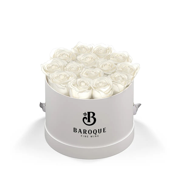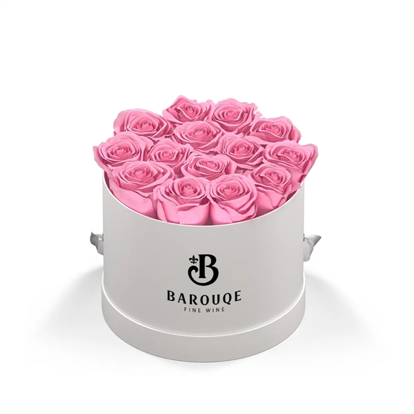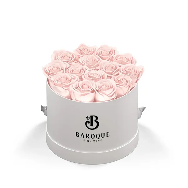 Choice of Rose Colors: Blush, Lavender, Pink, Red Or White. Arrangements Are Comprised Of 13-15 Exquisite Eternity® Roses Set In A Parisian-Inspired Hat Box Vase. Elevate Any Space With Grace And Simplicity.