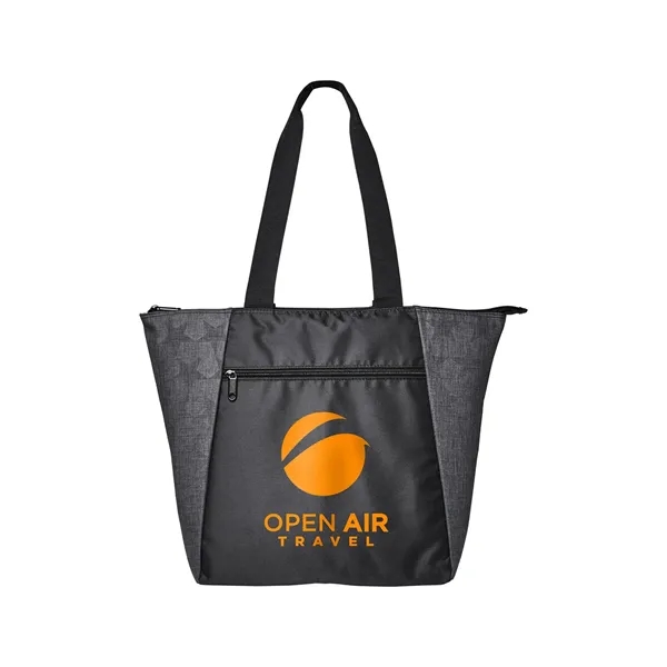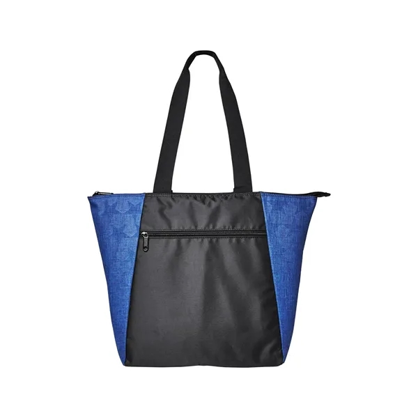 A Prime Line® Exclusive!** Tonal star pattern 300D Polyester with PU backing, 420D Dobby Jacquard front panel and pocket, 600D Polyester back and base. Top zipper closure. Front zipper pocket (approx. 10″w x 12″h). Interior open pocket with 210D Polyester lining. Hand-wash only. Recommended weight tolerance: 17.5 lbs.