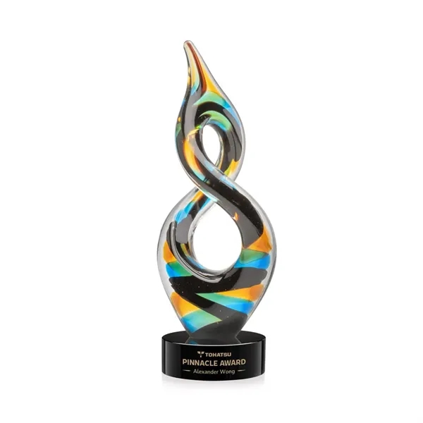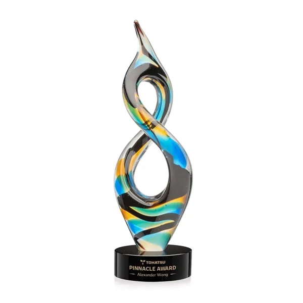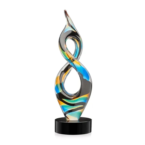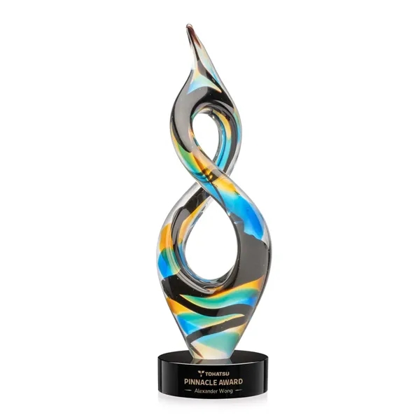 For a bold departure from the predictable, discover the captivating elegance of our Cosenzo Art Glass Award. Its flowing infinity-inspired form is a mesmerizing interplay of movement and balance, while vibrant ribbons of blue, teal, amber, and black swirl together in a dynamic dance of color. Each piece is individually hand-shaped and colored by skilled artisans, ensuring that no two are exactly alike. The solid optical crystal base offers a refined, etchable surface for logos, names, or messages, making it as personal as it is striking. Ideal as a decorative centerpiece or as an unforgettable recognition piece, the Cosenzo transforms any presentation into a visual celebration.