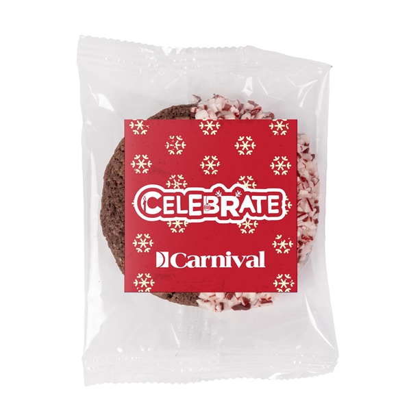 Delight everyone on your gift list with these delectable chocolate French sable cookies. Our Chocolate French Sable Cookies are half dipped in creamy white chocolate and covered in crushed peppermint. All cookies come individually wrapped with a 2"x2" full color, cully customizable label. Cookies have a 6 month shelf life.