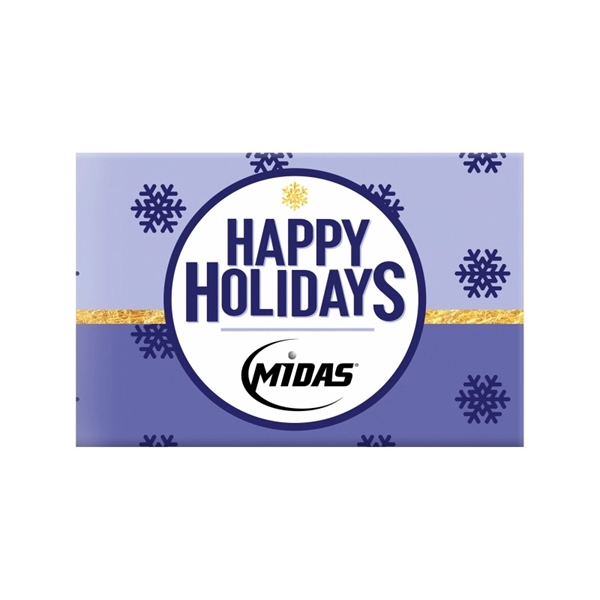 They’ll see, feel and taste your customer dedication with this memorable advertiser! Our 5 oz. budget conscious chocolate squares gift box comes with your choice of two milk and dark chocolate stock themed 3D pieces, a custom logo or both. Each is packed in a custom full color gift box. Great for promotional events, with one bite your customers and potential clients will be won over! Dimensions: 9 1/2″ x 4 1/2″. Kosher certification available.