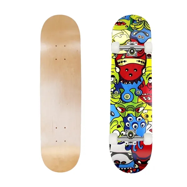 Nothing says American fun like skateboarding. This custom skateboard is made of maple wood for added strength and popularity. On its board surface can be customized full color pattern, you can customize according to your favorite personalized skateboard. It's a great choice for giveaways or promotions, and measures 31.50" x 7.87". Brackets, bearings and wheels are optional and customizable. If necessary, please contact us. The prices for 100pcs or over are based on ocean shipments.