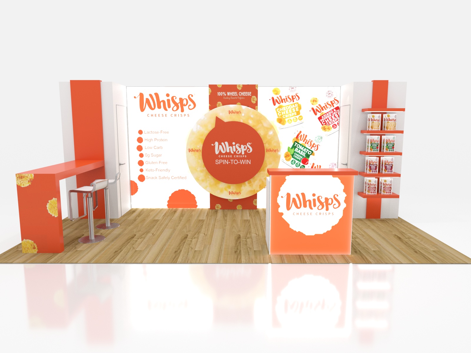 - (1) Connected Backwall Waterfall Counter with Front Graphic (20" W x 70" D x 42" H)