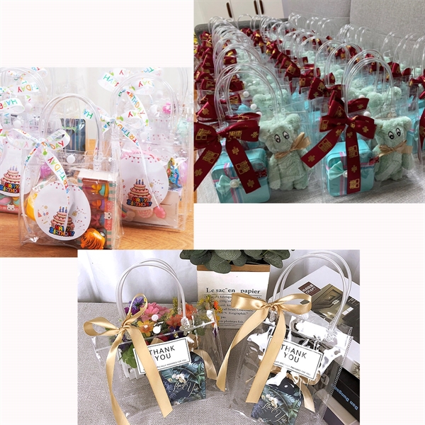 These custom gift bag are made of high quality PVC plastic material, reusable, clear and durable, can serve for a long time. Measuring 9.84” x 7.08” x 3.15”, big enough to hold some snacks, small toys, cosmetic items, flowers or gifts. Feature with button design at the top, easy to use and effectively prevents items from slipping out. Square bottom design, easy to stand up. Compared to ordinary plastic bags or shopping bags, they offer more load carrying capacity. Cute and ideal wrap bags for gifts and treats, make up items, party, celebrations, holiday, bridal shower, Christmas, fashionable items, DIY craft and more occasions. Qty over 8000 pcs, the price will include the sea freight. For more sizes and designs, please contact with us. We are always online!