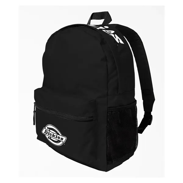 23L; 100% polyester;Large main compartment with laptop sleeve; Front zip compartment; Fully padded back panel for comfort; Side water bottle pocket; Product size: 17" x 13" x 5.7";