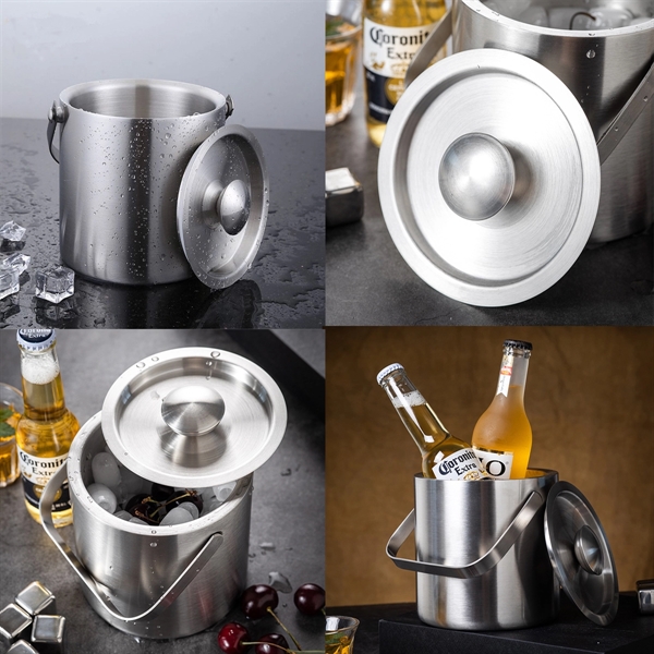 Contemplate the convenience of this stainless steel ice bucket set! The ice bucket has a capacity of 1.3L in a size of 6.3"H*5.5"D, with a lid and a ice tong in size of 6.5"H*0.7W. Very practical set that can be adapted for home, pub, restaurant, outdoor activities, parties, etc. Double stainless steel walls keep the ice from melting. Equipped with handle, elegant and generous when carrying bucket. Reliable quality, complies with LFGB and FDA. Customized design is available. Price for over 300 pcs is for sea shipment. We will always be online for you!