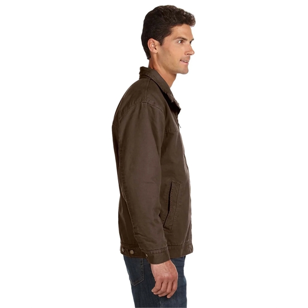 12 oz., 100% cotton quarry washed Boulder Cloth™ canvas;soft lining; inside side-entry cell phone and patch pockets; heavy-duty metal zipper with DRI DUCK pull; adjustable tab waistband;
