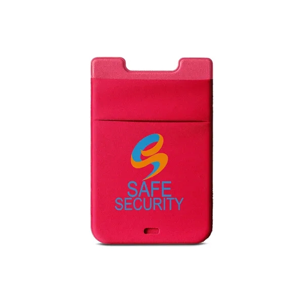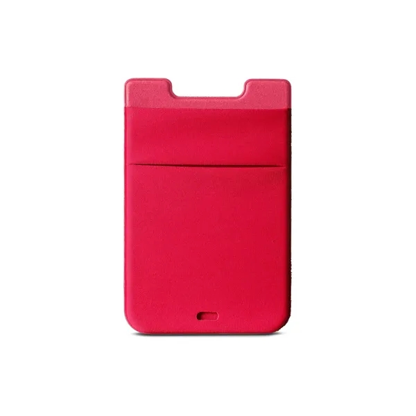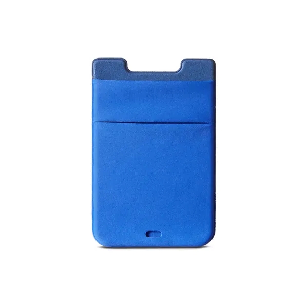 Dual Lycra® pocket with removable Polyurethane adhesive back for cell phone or mobile device. Non-residue adhesive sticks to the back of your mobile phone. Slim back pocket holds approx. 4 business, credit or ID cards. Front pocket stretches to hold most compact wireless earbuds.