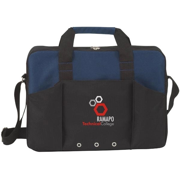 Feel powerful carrying this sturdy briefcase. Its gusseted front pockets provide plenty of storage room for all your business essentials, and its adjustable shoulder strap and fabric-wrapped handles make it easy to tote around.