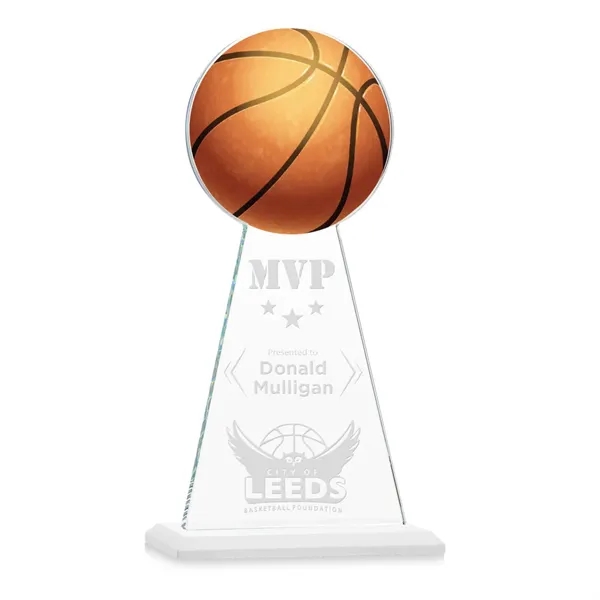 The Starfire Crystal Edenwood Award stands tall as a symbol of recognition for outstanding achievements in basketball, whether by individuals or teams. It serves as a versatile token of appreciation, suitable for commemorating tournaments, celebrating remarkable performances, or acknowledging the dedication of players, staff, and volunteers. Crafted with precision, its sleek design features symmetrical sloping sides culminating in the distinctive contour of a basketball at its peak. Mounted on a beveled base in your choice of 8 different colors and includes an imprinted basketball at the top of the award.
