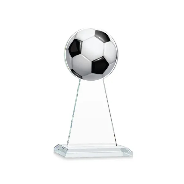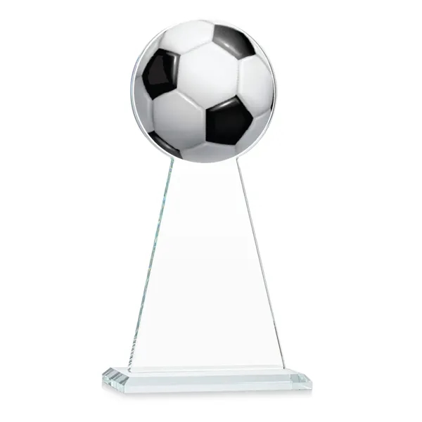 The Starfire Crystal Edenwood Award stands tall as a symbol of recognition for outstanding achievements in soccer, whether by individuals or teams. It serves as a versatile token of appreciation, suitable for commemorating tournaments, celebrating remarkable performances, or acknowledging the dedication of players, staff, and volunteers. Crafted with precision, its sleek design features symmetrical sloping sides culminating in the distinctive contour of a soccer ball at its peak. Mounted on a beveled base in your choice of 8 different colors and includes an imprinted Soccer ball at the top of the award.