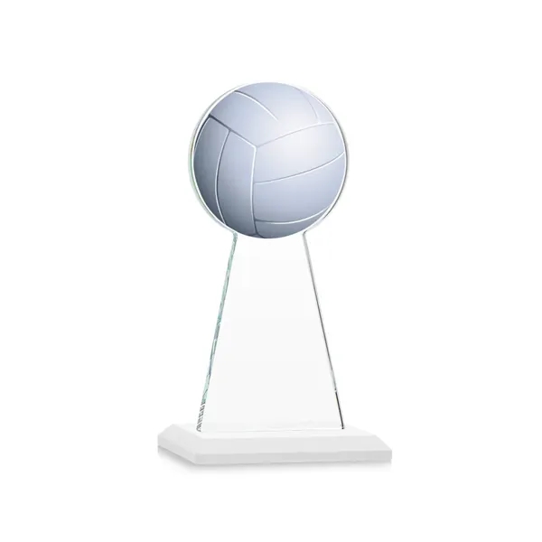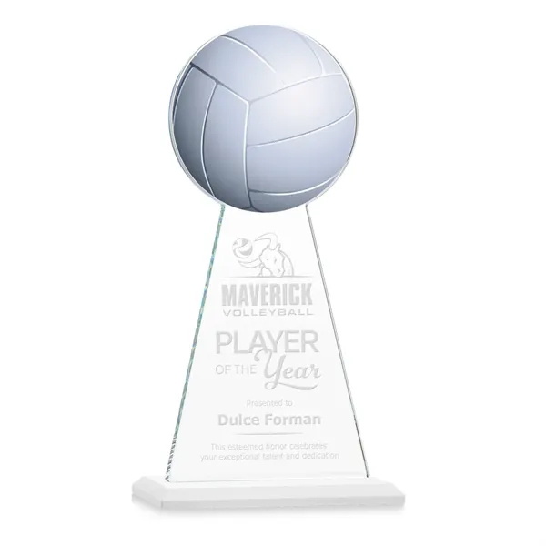 The Starfire Crystal Edenwood Award stands tall as a symbol of recognition for outstanding achievements in volleyball, whether by individuals or teams. It serves as a versatile token of appreciation, suitable for commemorating tournaments, celebrating remarkable performances, or acknowledging the dedication of players, staff, and volunteers. Crafted with precision, its sleek design features symmetrical sloping sides culminating in the distinctive contour of a volleyball at its peak. Mounted on a beveled base in your choice of 8 different colors.