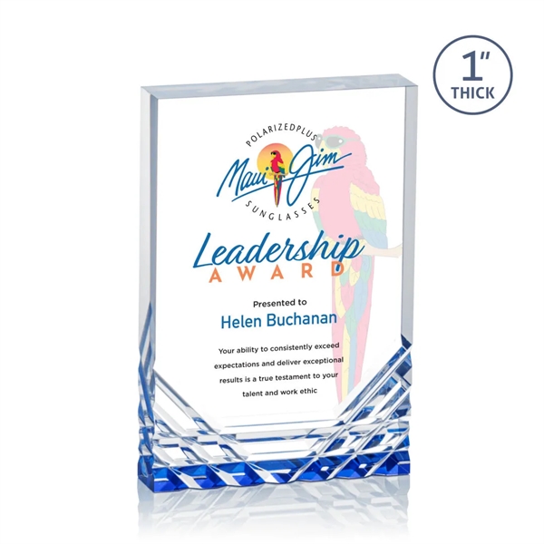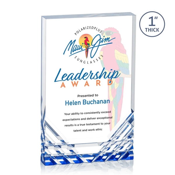 Feel the electric touch of recognition with the Elektra Award! This thick freestanding acrylic award features a sapphire accent in the base that reflections color through the cuts of acrylic for a stunning display of your words of appreciation.