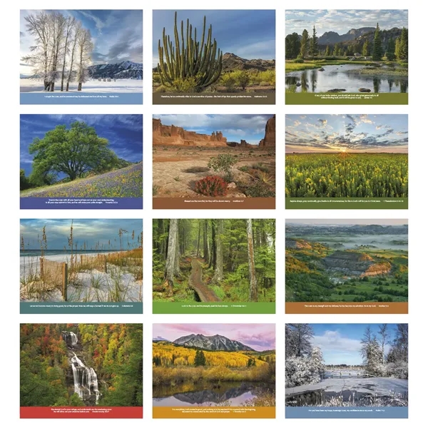 This 13-month calendar features Bible verses from the New International Version. The FSC® label means that the materials used for this product come from well-managed FSC®-certified forests and other controlled sources.
